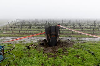 In pictures: The tail section of an Iranian ballistic missile fired from Iran, sticks out of the ground at a vineyard in Golan Heights